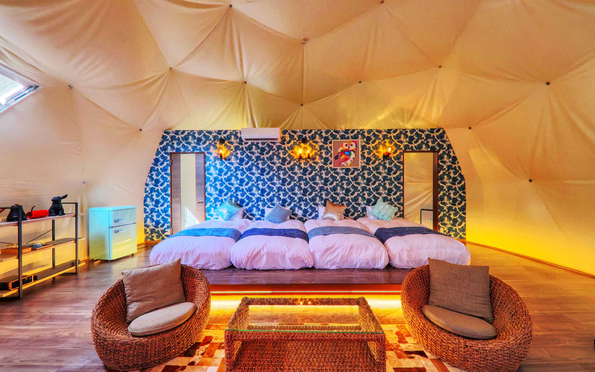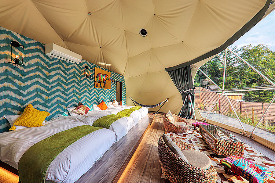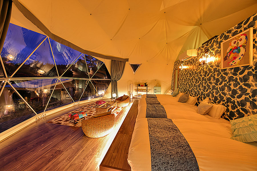圓頂帳篷內配備冷暖氣,無論任何季節都能舒適入住。