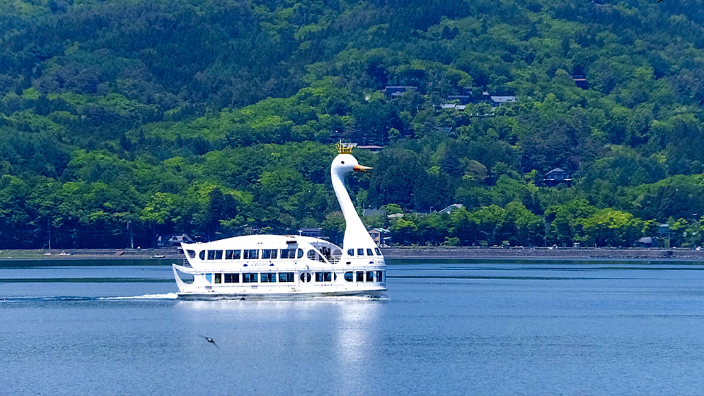 船上設有觀景用雙筒望遠鏡及附方向盤的兒童觀景座位,充滿各種讓人樂在山中湖景色中的…