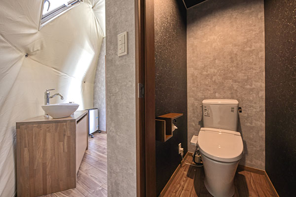 帳篷內配備設有溫水洗淨功能的洗手間及淋浴間。